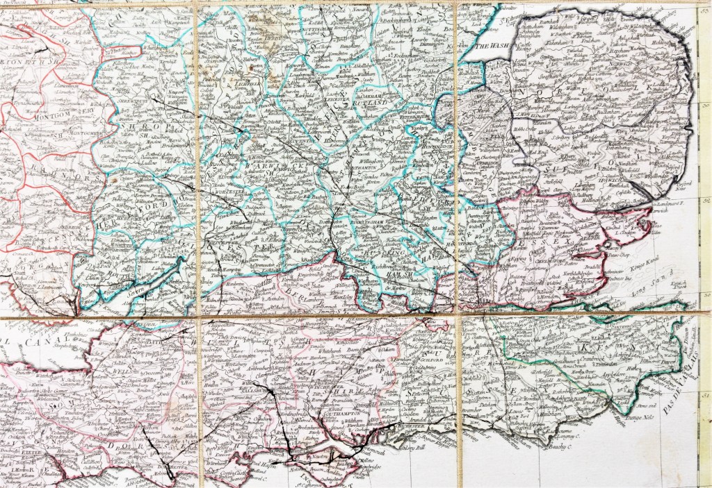 Often the maps were of England and Wales with just part of Scotland: the size limitations made it difficult to include the whole of Scotland without over-compressing England, where much of the travel would be occurring. This example by William Faden from 1801, includes an inset map on a much smaller scale.